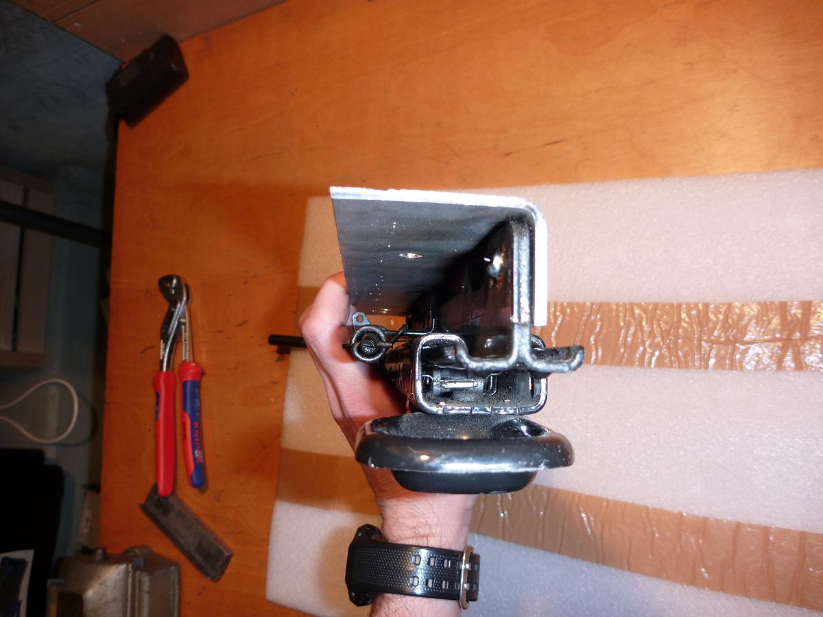 die OEM haben die Befestigung seiitlich, also habe ich dden oberen Teil der auf den Läufer aufgenietet ist ausgebohrt und stattdessen 3mm Blechwinkel angeschweisst: