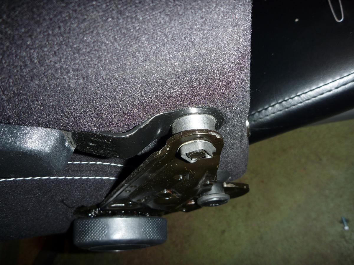 da der Speed Sitz beidseitig ein Rad für die Lehnenverstellung hat und es dafür zu eng im S ist, musste eine Seiten der Flex nachgeben und der andere Bolzen ca. 15mm gekürzt, der untere Teil des Verstellrades abgeschliffen werden