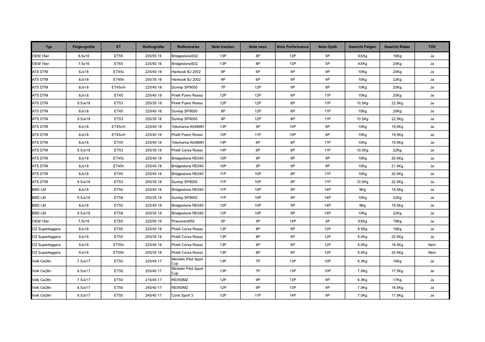 Nummer Typ Note_trocken Note_nass Note_Performance Note_Optik Gewicht_Felgen Gewicht_Räder TÜV Bewertung nach 15P== 1.0 0P==6.0