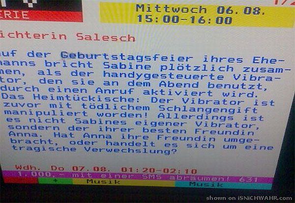 Ich wollte das erst unter "Humor" posten, aber irgendwie ist dass dann doch zu traurig was für ein Mist im Fernsehen läuft.
