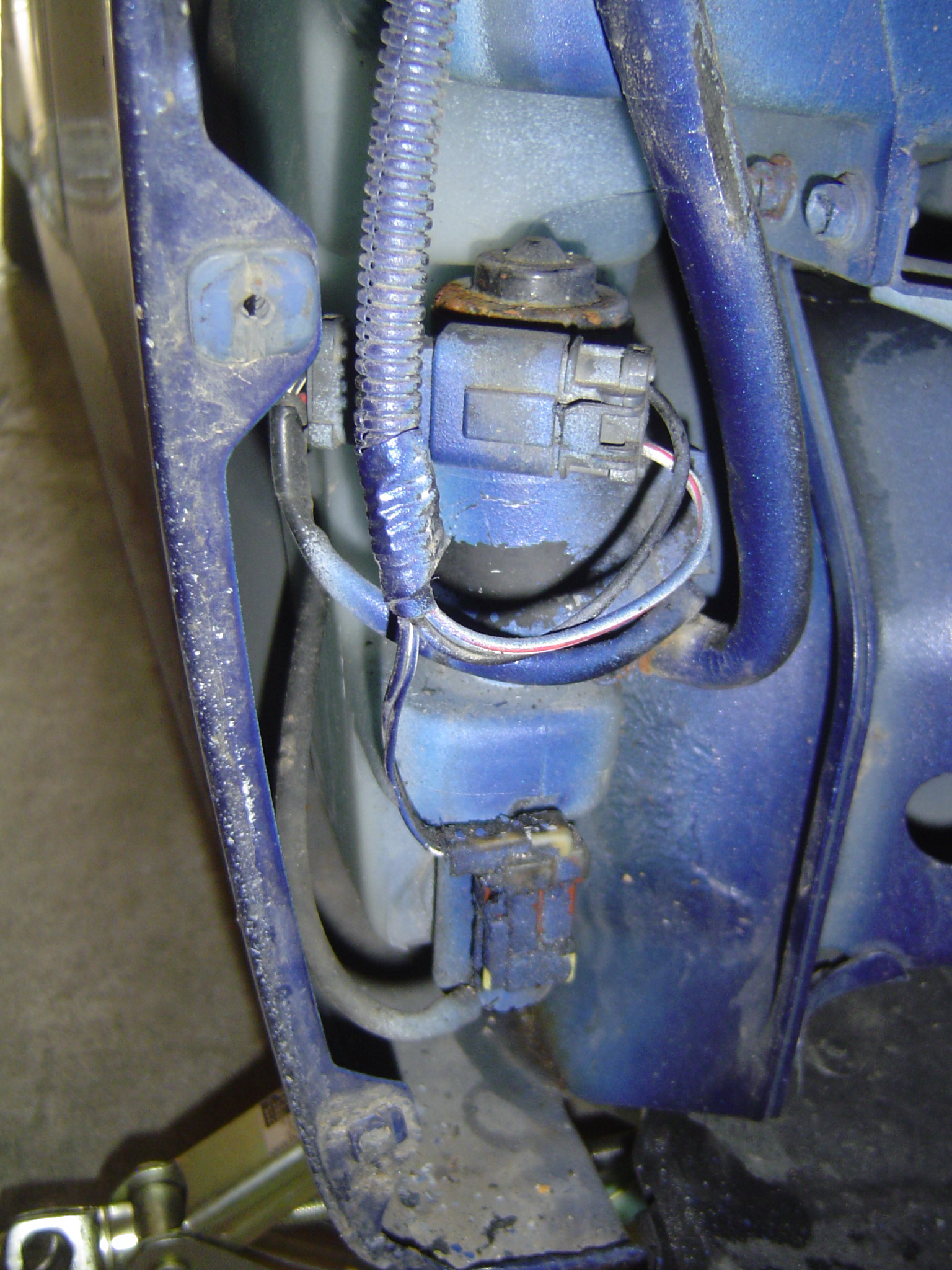 Hier ein Foto des Teils, der obere Stecker war draussen und der dicke Schlauch geht zu den vorderen Waschdüsen :