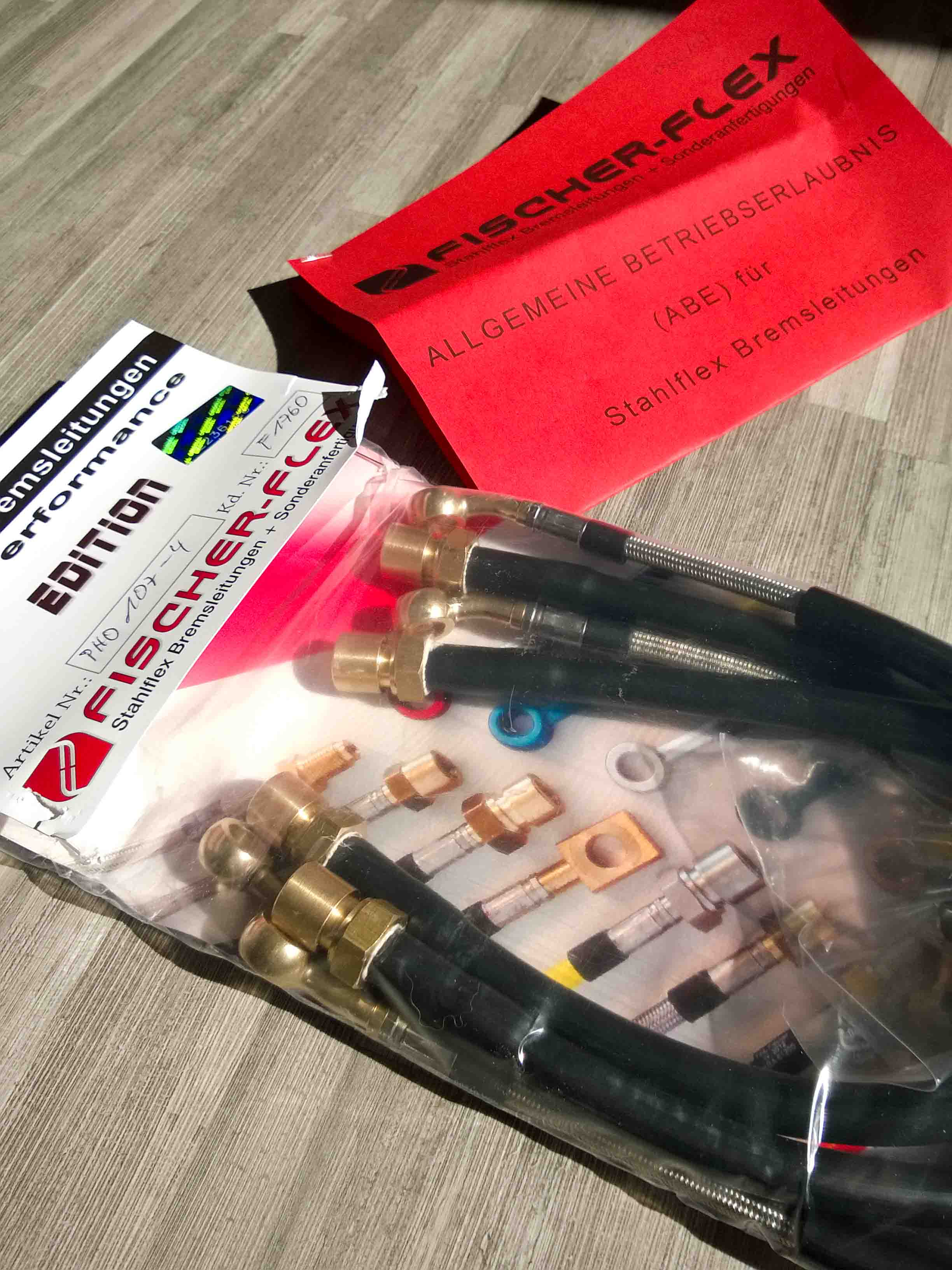 -> super Bremsgefühl / kann aber auch einfach an der neuen Bremsflüssigkeit liegen; die Gelegenheit war günstig.. Goodridge bestellt -> Fischer-Flex erhalten