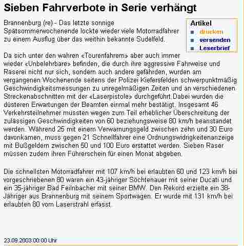 • Der Zeitungsbreicht klingt mir in der Tendenz zu negativ. Twisted Evil Fast so, als ob da dieser Aushilfs-Redakteur etwas gegen Sportwagen und schnelle Motorräder hätte. Das hätte man ganz anders schreiben müssen: