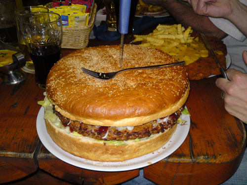 Der Doppel-Cheese-Burger hat die Maße von 30*25 (32,- EUR), der "Kleine" für 19,- EUR sieht so aus: