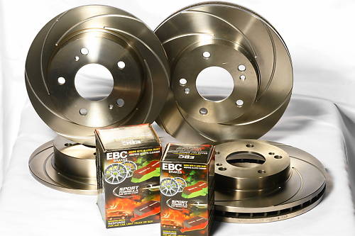S2000 EBC GROOVED BRAKE DISCS + REDSTUFF PADS VORNE+HINTEN