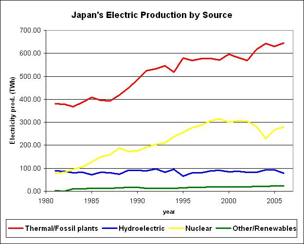 Japan bezieht ca. 26% seines gewaltigen Energieverbrauchs aus der Kernenergie.