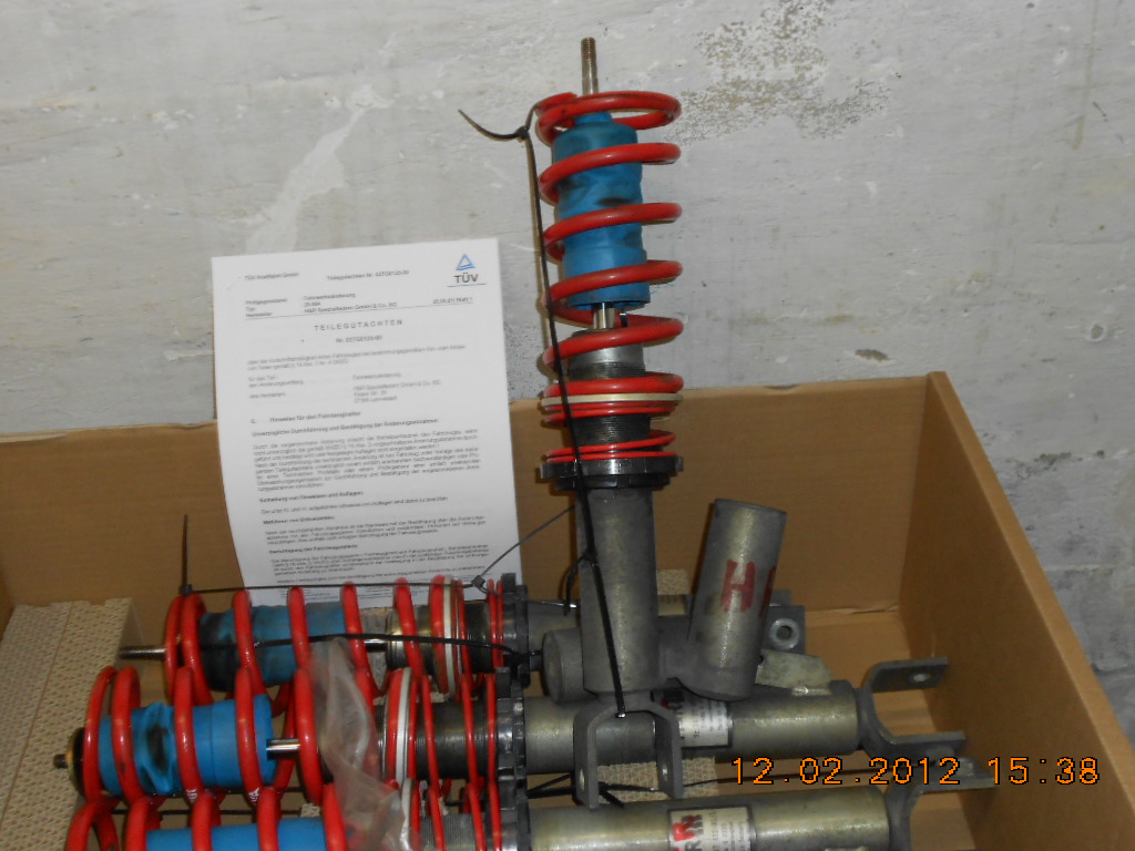 Das Fahrwerk ist mittlerweile ausgebaut und somit kann ich auch Fotos zeigen. Da das Fahrwerk so gut wie verschickt war, aber der Käufer iangels Kohle von Kauf zurückgetreten ist, ist dieses noch zu haben. Fahrwerk ist im technich einwandfreiem Zustand incl. TÜV-Teilegutachten.