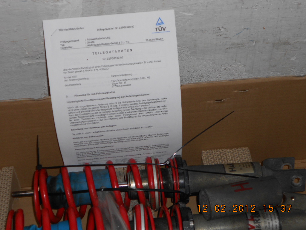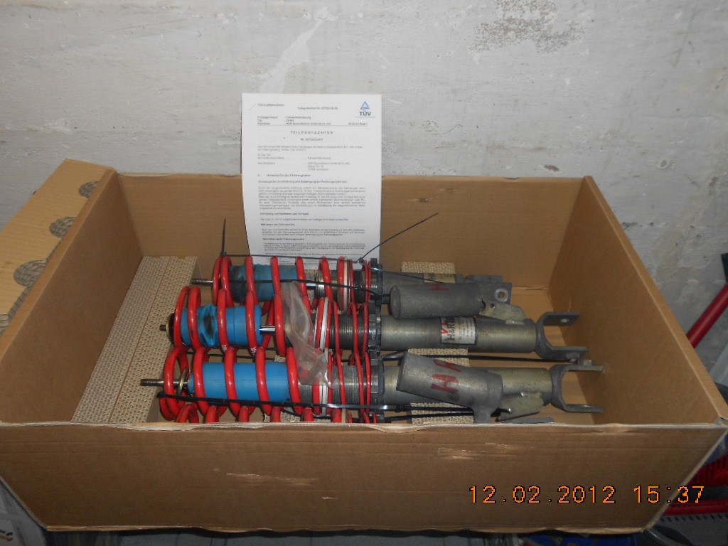 Das Fahrwerk ist mittlerweile ausgebaut und somit kann ich auch Fotos zeigen. Da das Fahrwerk so gut wie verschickt war, aber der Käufer mangels Kohle von Kauf zurückgetreten ist, ist dieses noch zu haben. Fahrwerk ist im technich einwandfreiem Zustand incl. TÜV-Teilegutachten.