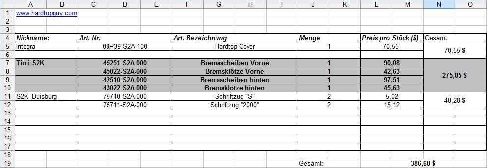 Eventuell könnte man ja zusammen bestellen, weil die Versand kosten schon sehr hoch sind.