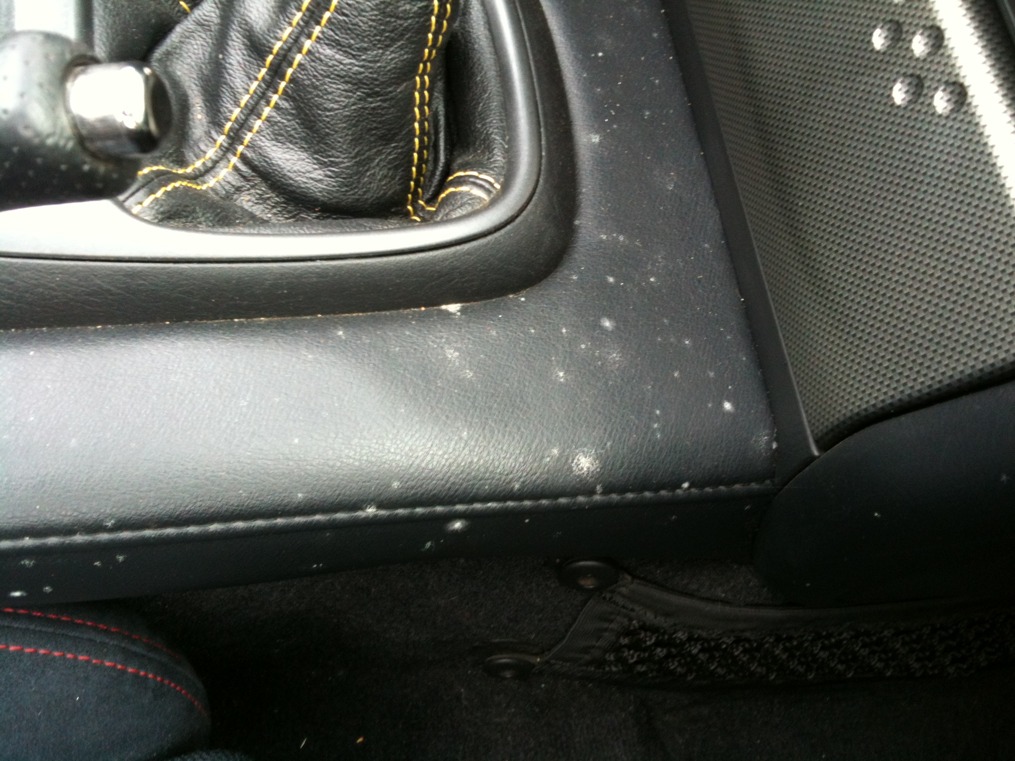 Am Armaturebrett sowie an der Mittelkonsole und der Türverkleidung gibt es weisse Flecken.