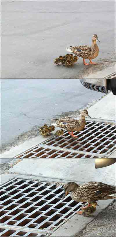 Keine Sorge Mel, die stehen alle in Sicherheit hinter der Mutter, werden aber entweder durch die Abgase des Diesel (Auspuff oben links) getötet oder beim rückwärts Ausparken von dem Auto überrollt.
