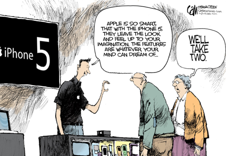 Er saß in der Stube und schaute fern, als sie herein kam und fragte, was es auf dem Fernseher gäbe. Er antwortete "Staub". Nach einiger Zeit hatte sie sich wieder gefangen.