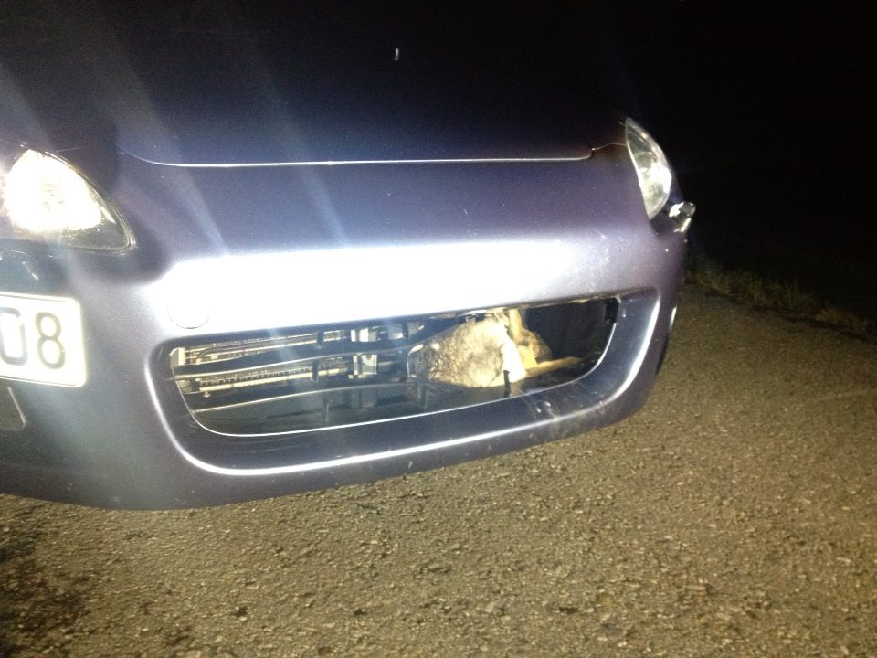 das teil hats wie man sieht durch den grill und fast durch den kühler gefetzt...!!! kühler fast bist zum fan durchgebogen.