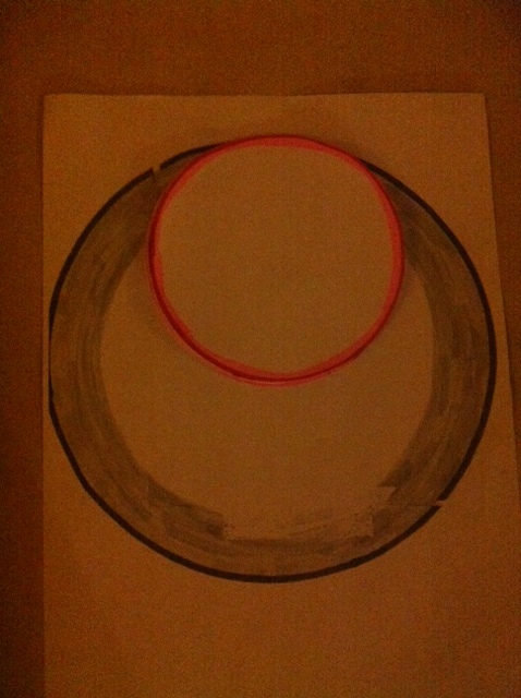 Es ging auch nur um das Größenverhältnis der kleinen zum großen Kreis. In Deinem Bild sah es stark nach exakt der Hälfte aus. Dann ginge es überhaupt nicht den ganzen Kreis abzudecken.