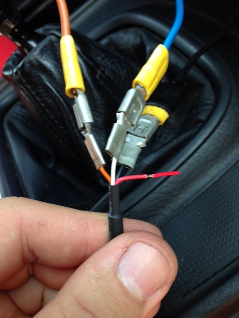 1. Zündungsplus (blau) an weiße Kabel (Anzeige)