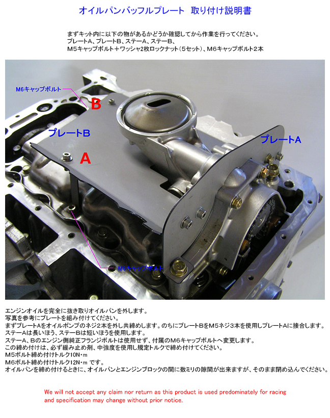 オイルパンバッフルプレート取り付け説明書