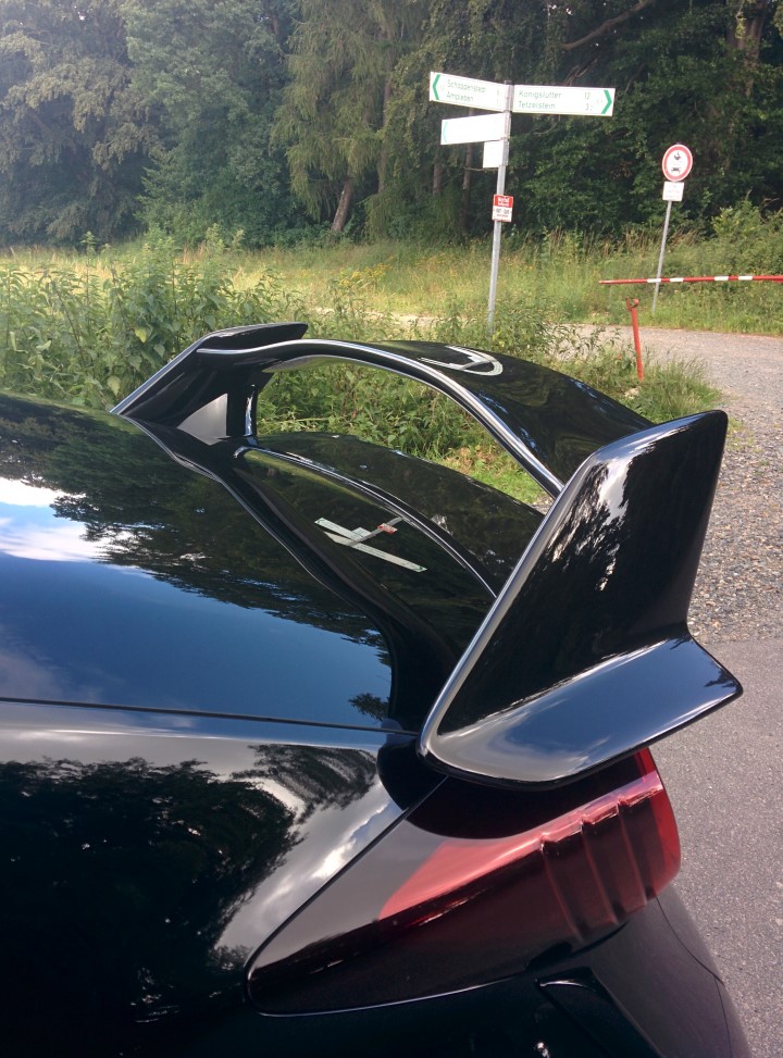 Bleibt noch die Theke. Sie dürfte auch für mich dezenter sein. Käme ich drauf klar, aber ich verstehe auch, dass das grenzwertig anmutet. Es ist mir gestern auch passiert, dass ich an einer Tankstelle aus allen Richtungen lang gereckte Köpfe entdeckte. Selbst der Tankwart kam hinter seiner Kasse vor. Muss man mögen. :D Ganz lustig war heute früh der Moment, als ich den CTR bereits abgegeben hatte, nachdem ich das Auto nun 24h lang echt oft vor Augen hatte und ich mich an fast-forward-Optik deutlich gewöhnt hatte: Du fährst auf so'nen durchschnittlichen Firmen Parkplatz und bist zurück in der schnöden Einöde langweiliger Autos. Sorry Kollegen.