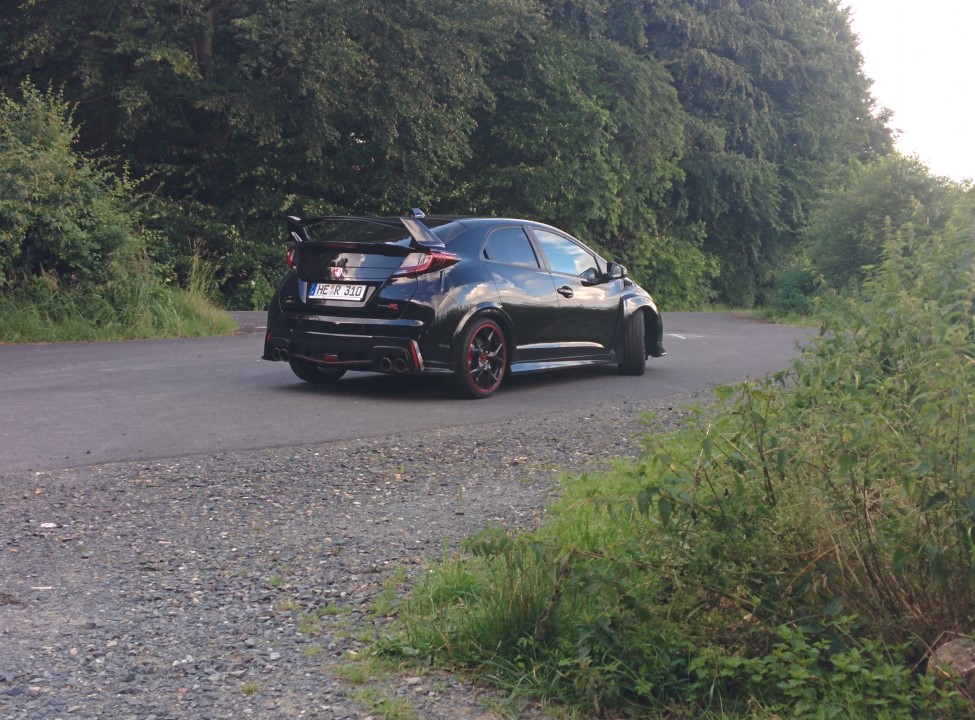 Ich hatte so eine coole Situation kurz vor der Abgabe. Landstraße, hinter nem Opel Kombi. Der fuhr etwa 100. Vor uns eine 90 Grad Links, die nicht allzu eng ist. Das war genau hier. Ich dachte dann: Mmmmm... der bremst gleich wieder auf 70 runter, obwohl die Kurve mit 120 auch geht. Also später Entschluss, noch vor der Kurve dran vorbei. Bääääm... easy dran vorbei gepfiffen... vor ihm bissl nach rechts orientiert, kurz hart geankert um Speed zu eliminieren und dann schon wieder aufs Gas und mit Qualm an der Kette links durch die Kurve. Sowas geht mit dem TypeR fahrerisch recht einfach und bringt dadurch auch echt Laune. Mit dem S hätte ich den Move so nicht gemacht, denke ich.
