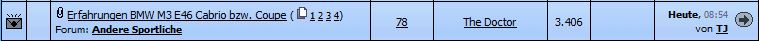 Letzter Beitrag im E46 M3 Thread hat Timo heute früh geschrieben. Wenn ich dann reingehe, sehe ich nur die Antwort von Lars vom 02.04.?! ![]()