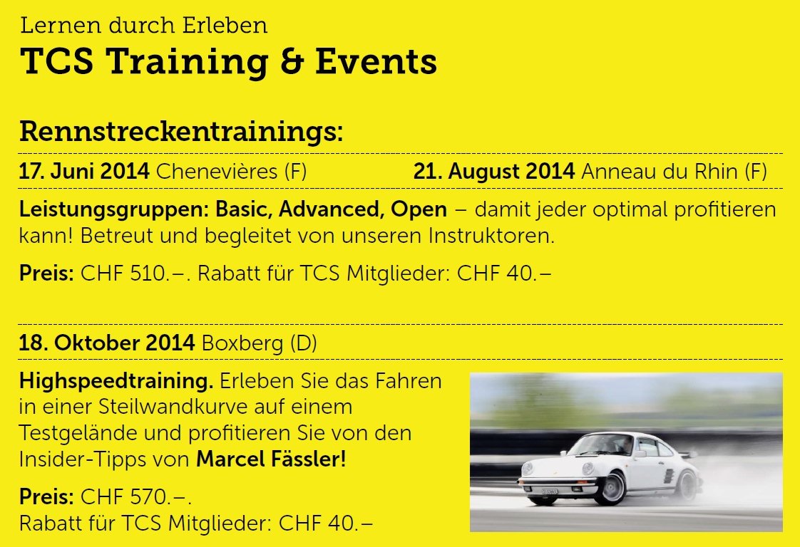 Der Kursinhalt dürfte wohl dem schon bekannten Sportfahrtraining in Lignières entsprechen (siehe Fahrtraining "Sport" des TCS am 29. Juni). Obwohl der Preis ziemlich unverschämt ist, überlege ich mir einen Besuch.