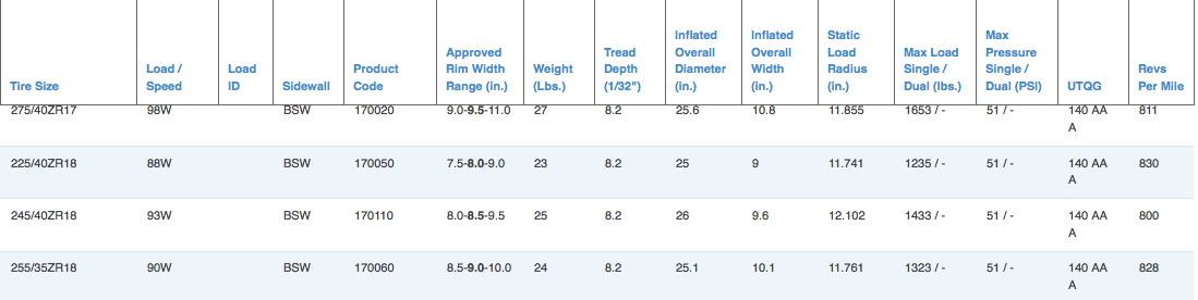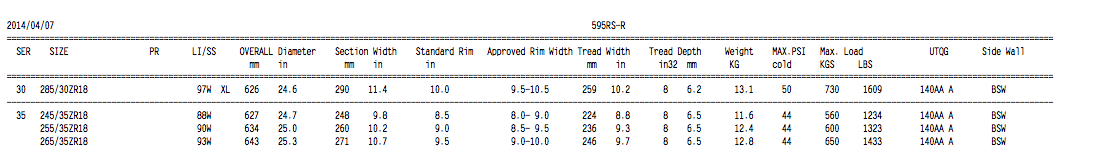 Die Reifengröße ist 255 35 18