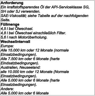 Wenn man sich daran hält, dann ist man meiner Ansicht nach beim Thema Öl auf der sicheren Seite. Wichtig ist nur, dass man aufpasst und sich nicht eines der aktuellen Leichtlauföle einfüllt oder einfüllen lässt. Diese haben einen abgesenkten HTHS-Wert < 3,5 mPa*s und taugen nichts für unseren "alten" Motor. Das lässt sich leicht an den europäischen Normen ACEA erkennen die das Öl erfüllt.