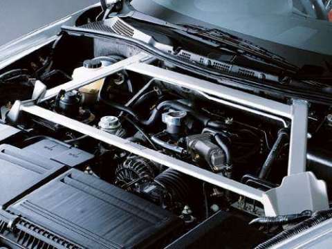 Hat der Fahrer erst mal Platz genommen, fallen nicht erst bei der Drehung des Zündschlüssels die ersten Besonderheiten dieses Fahrzeugs auf. Das für einen Sportwagen etwas zu groß geratene Lederlenkrad ist mit zweifarbigem Leder bezogen und besitzt einige Knöpfe zur Fernsteuerung des Radios. Die Cockpitanzeigen sind erst sichtbar, wenn man den Zündschlüssel dreht – ein nettes Gimmick, was sich mittlerweile bei immer mehr Japanern findet. Man blickt in drei große Anzeigetrichter und fragt sich, warum diese so groß dimensioniert sind, bzw. warum sie so wenig ausgefüllt sind. Locker hätte man die Anzeigen des linken und rechten Trichters in einem Rundinstrument unterbringen können – so jedenfalls wirken die analogen Anzeigen für Wassertemperatur, Tankinhalt und Ölstand reichlich verloren in ihrem zu üppig bemessenen Platz. Einen Bordcomputer vermisst man gänzlich. Einzig das mittlere (und wichtigste) Instrument zeigt einen großen analogen Drehzahlmesser und die Geschwindigkeit in einem Dreisegment-Display und wirkt so angemessen designed.