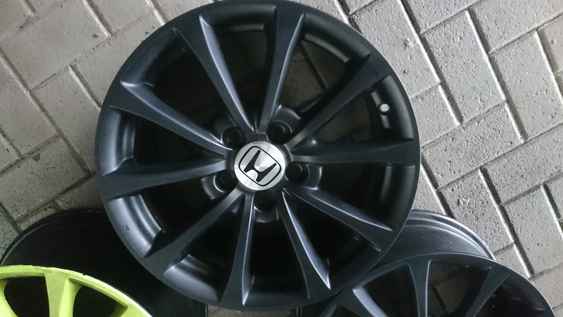eine Felge hat 2 kleine abdrücke vom Montiereisen die aber kaum zu sehen sind und mit schwarz ausgtupft werden können.