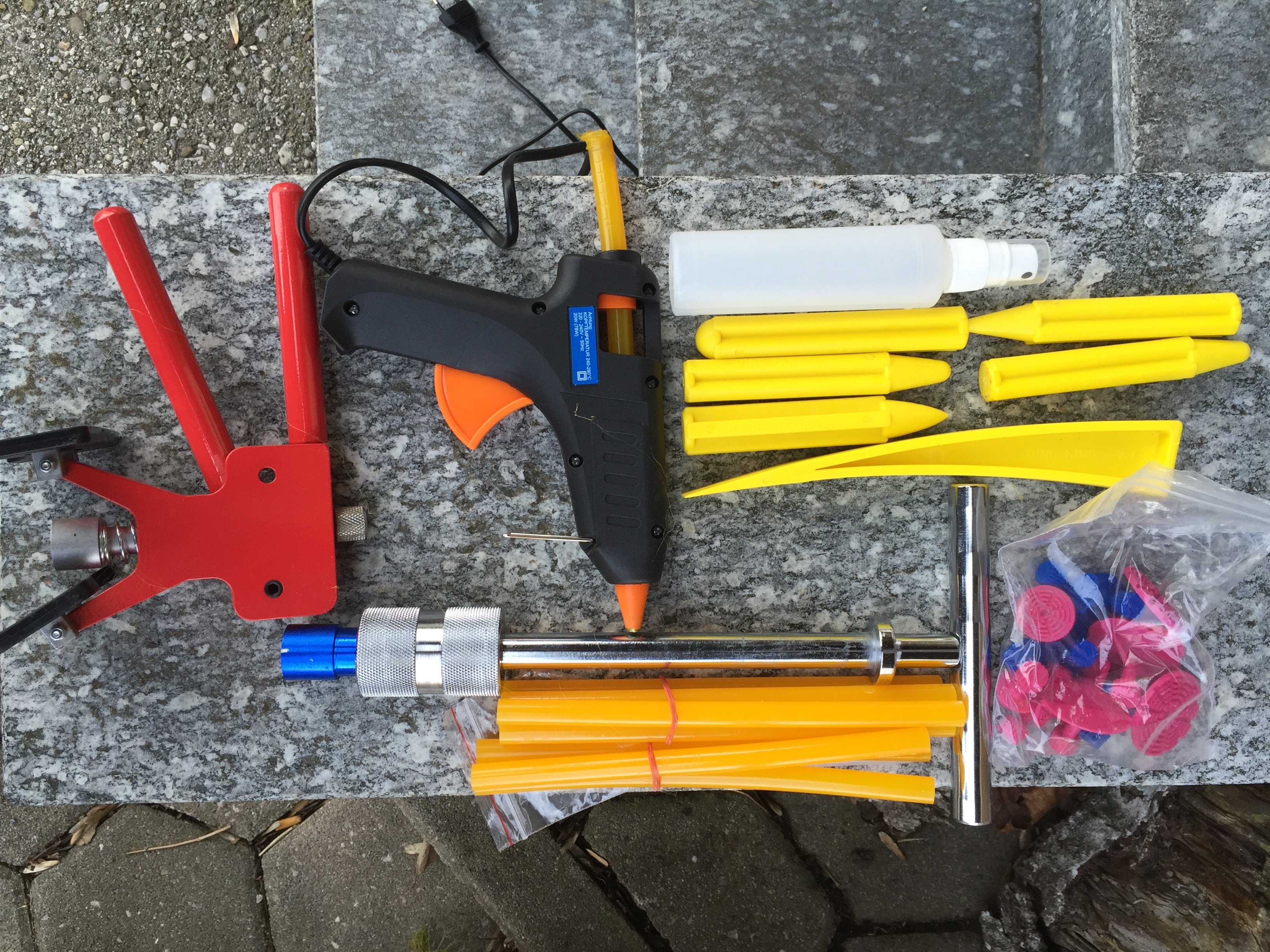 Anwendung ist echt total easy, hab alle Beulen am Wagen raus bekommen, auch die an der Tür.