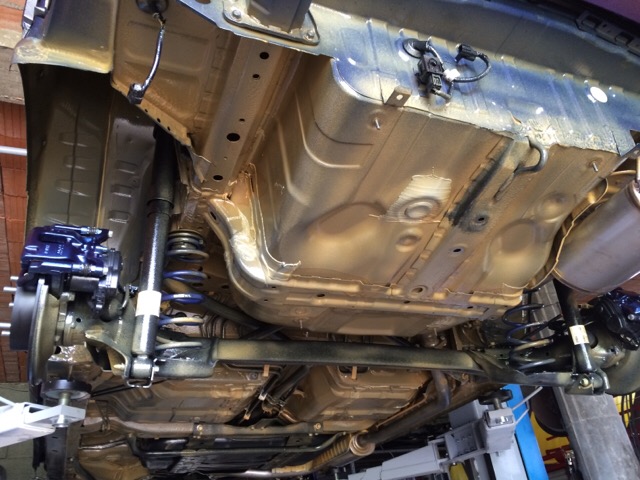 Grund für die Umfangreiche Zerlegung eines Neuwagens ist, das er gleich komplett Hohlraum und Unterbodenversiegt wird. Wie man sehen kann ist der Wagen von Werk aus ja nur Grundiert und Hohlraumschutz quasi nicht vorhanden.In dem Zuge wird auch das Robust Styling Paket verbaut und der Wagen tiefer gelegt.