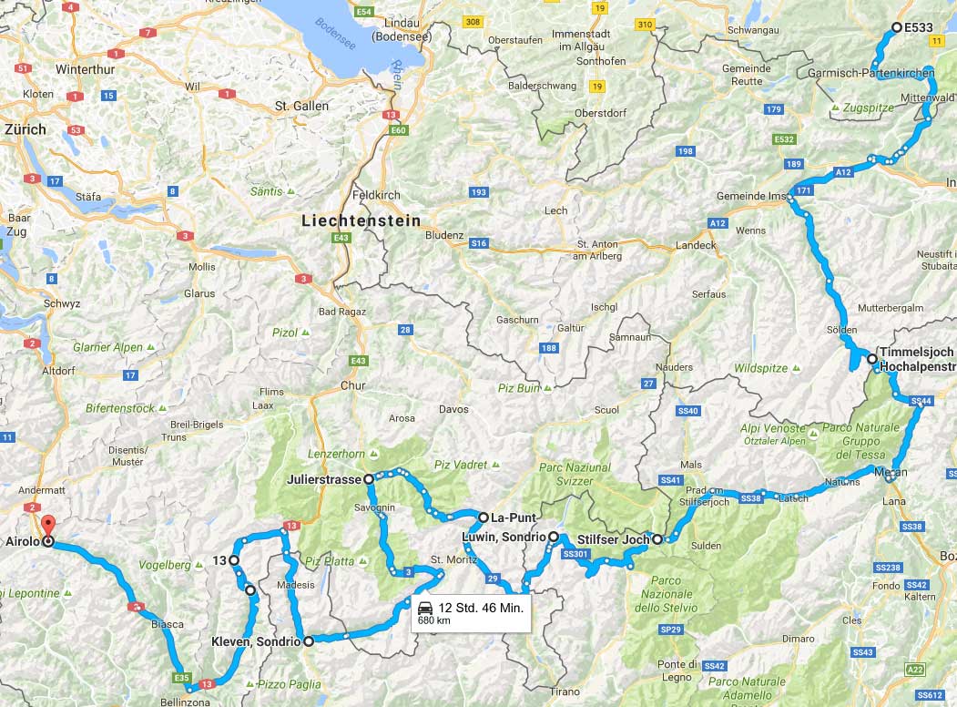 das sind zusammen ca 1.200km Kurven in zwei Tagen.
