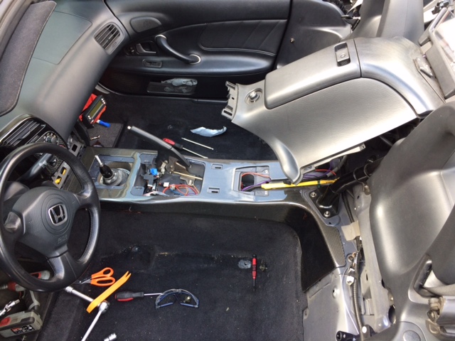 . Denn damit man die Mittelkonsole einbauen kann muss alles was unmittelbar in der Nähe ist ausgebaut werden.