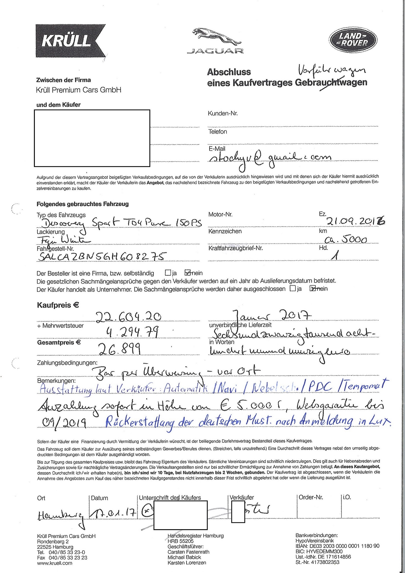 Die haben mir einen unterschriebenen Kaufvertrag gesendet udn ich habe diesen unterschrieben und zurueckgesendet.