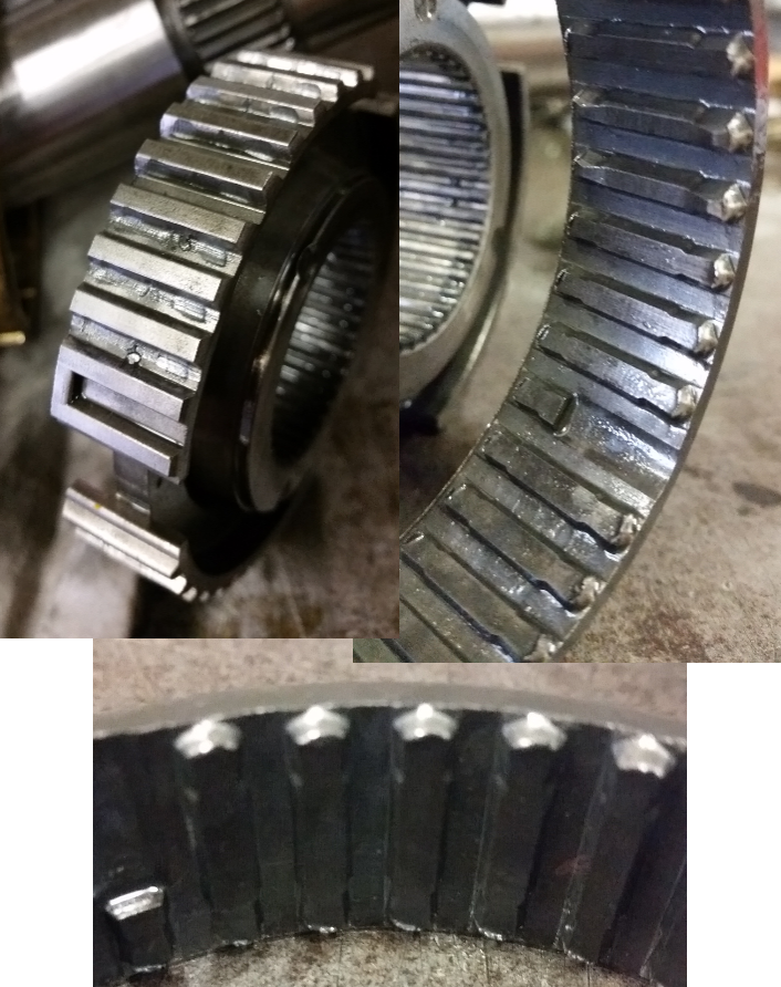 Nun die Schaltmuffe mit den Zähnen, die den Kraftschluss herstellt, nutzt sich dadurch ab was zur Gradbildung führt, was man sehr gut am Foto sieht.
