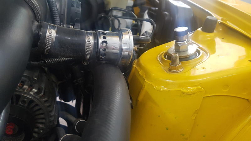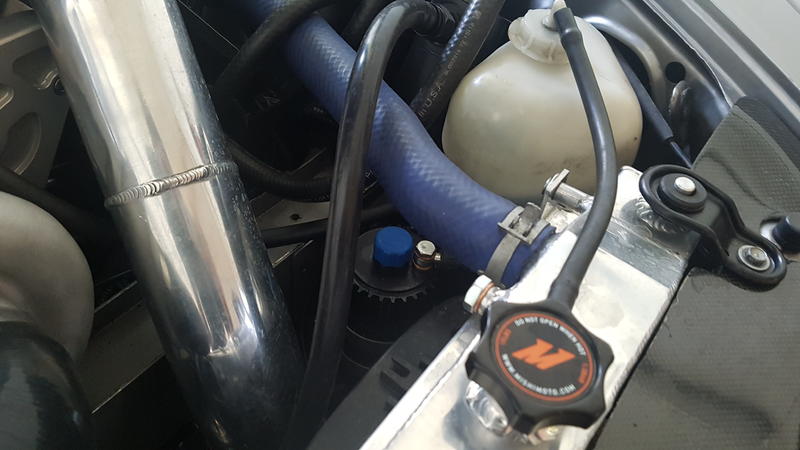 Ebenfalls falsch montiert wurde der Ölbehälter des Rotrex Kompressors. Nen Tick zu hoch und auch noch in der nähe des Krümmers was das Öl noch weiter aufheizt: