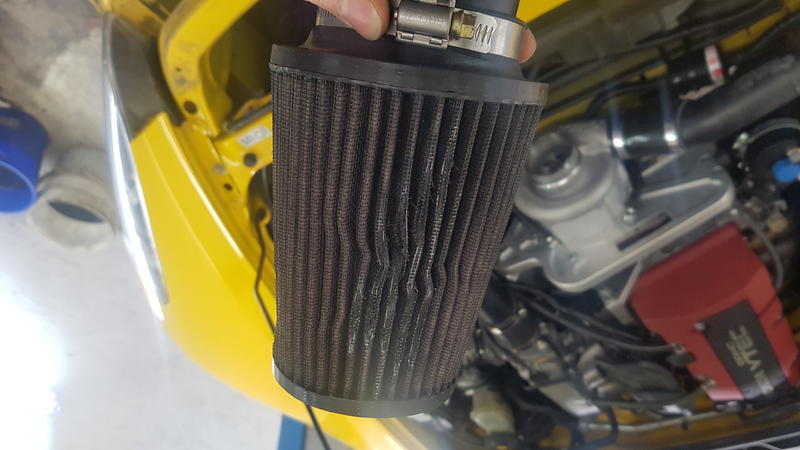 So weiter gehts. Der Luftfilter wurde so eingebaut das er am heißen Ladedruckrohr anliegt. Das hat an beiden Bauteilen natürlich deutliche Spuren hinterlassen: