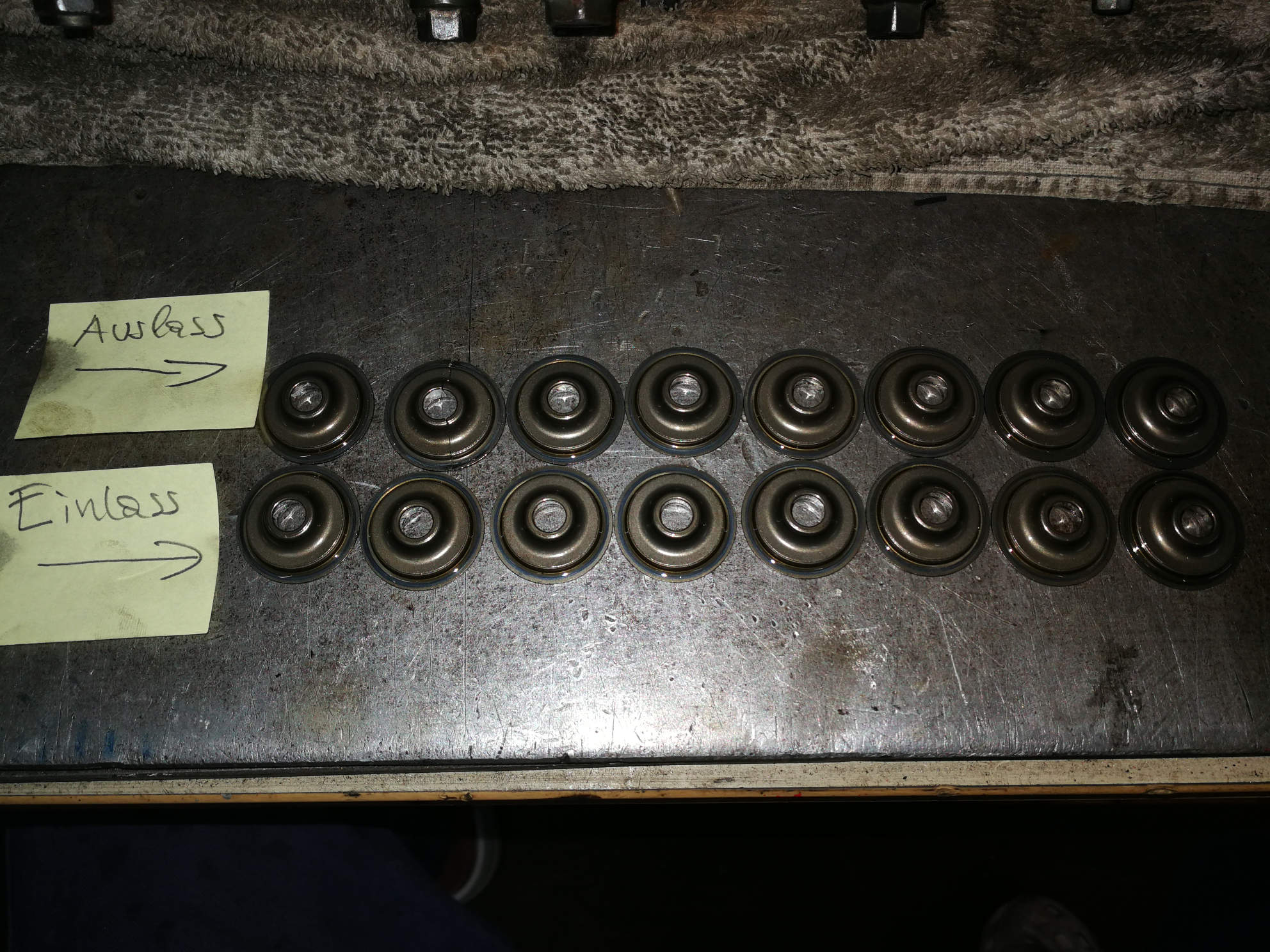 hab heut weiter zerlegt, 2 weitere Ventilteller auslassseitig haben einen kleinen Riss -> Zeitbombe. Einlassseitig kann man mit freiem Auge nichts erkennen.