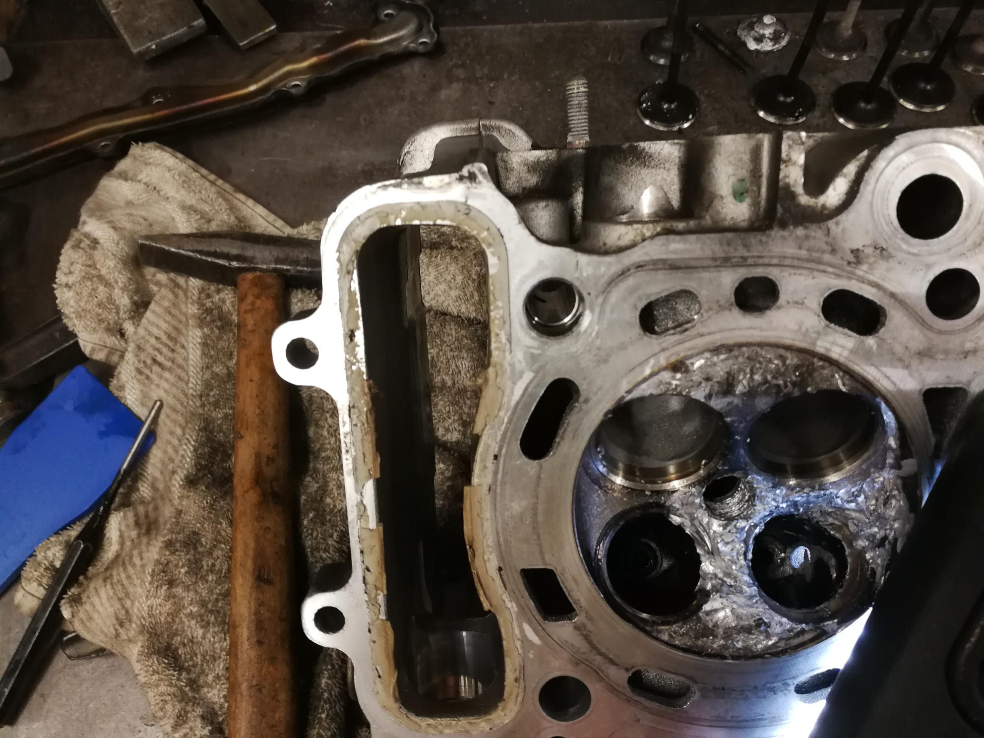 Am Zyl1 Auslass hab ich ein Loch zum Wasserkanal wie man erkennen kann. War auch Wasser im Öl beim ablassen (warscheinlich Loch im Kolben).