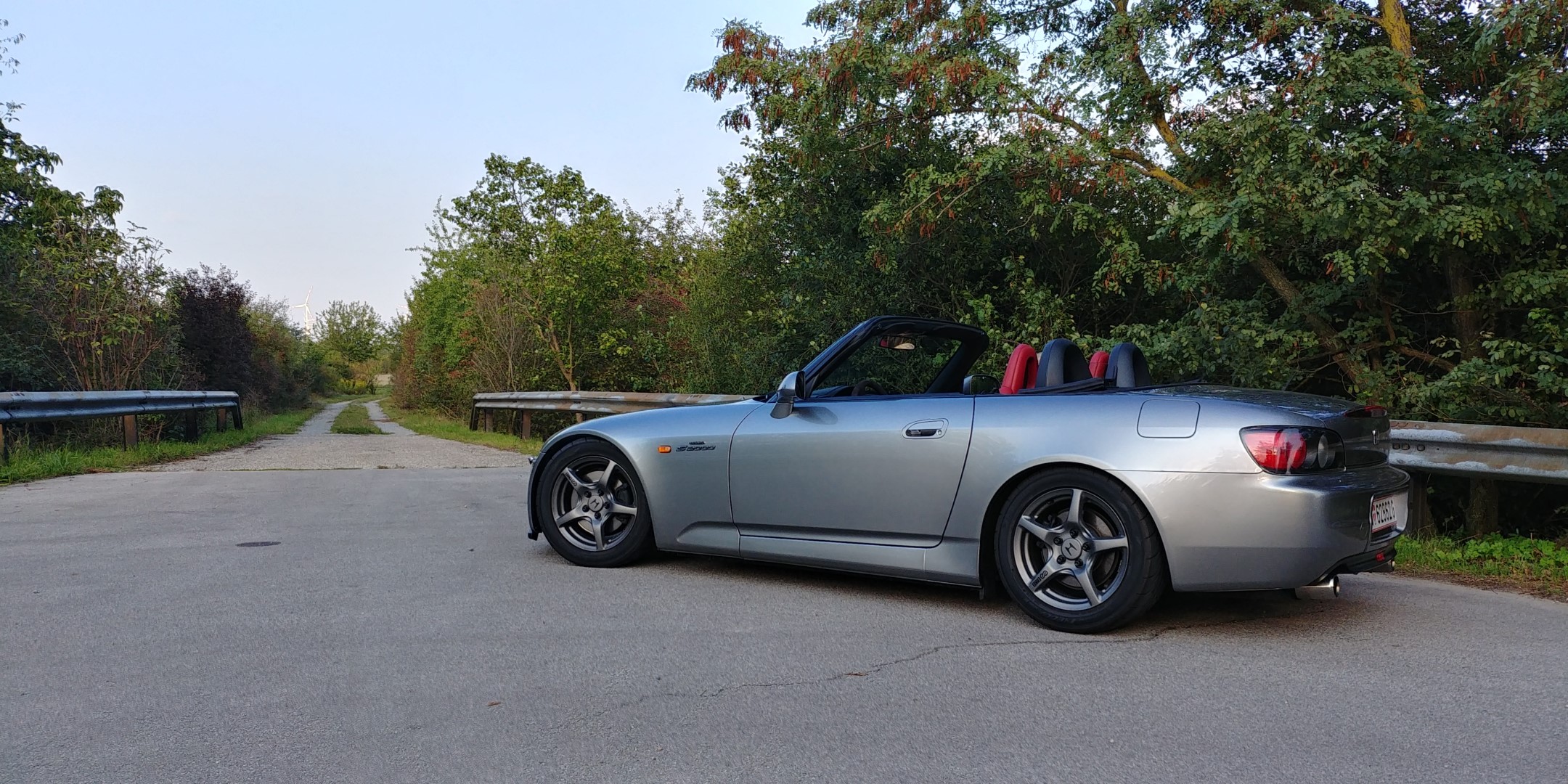 Mein Name ist Victor, komme aus Wien, und ich habe mir einen Honda S2000 zugelegt, Farbe Silverstone, BJ. 2000, 69.000km. Im Großen und Ganzen unverbastelt, Felgen sind lackiert und er hat ein Gewinde drauf. Die Schürze vorne hat eine Lippe und die vordere Stoßstange ist gecleant worden. Das war es, denke ich mal.