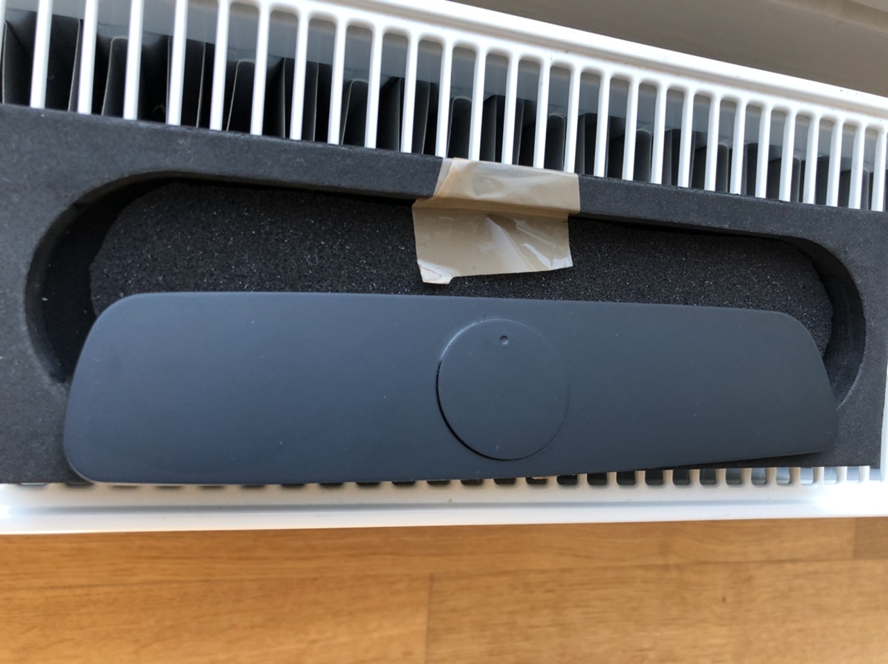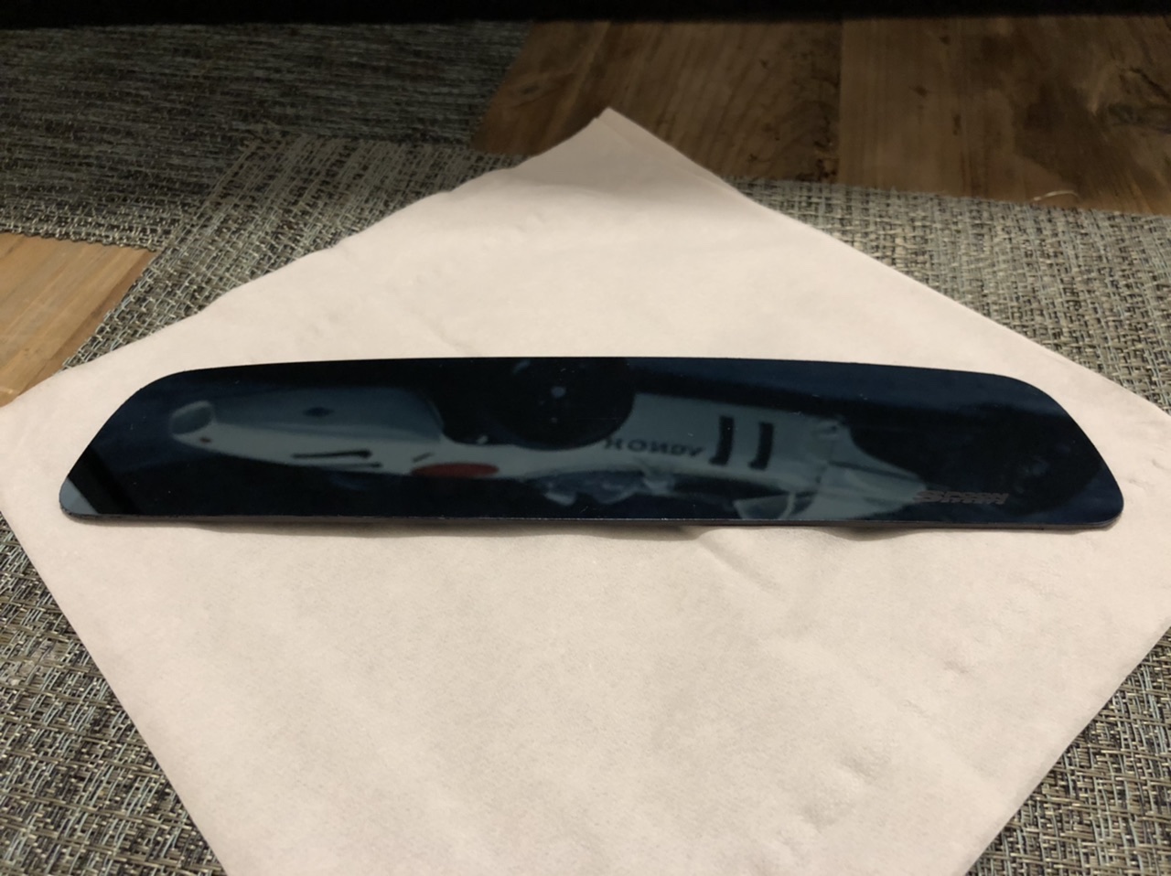 Bis dahin habe ich die unbehandelte Rückseite mit Flüssigvinyl benetzt und für den ersten Versuch ist es , aber der blaue Sticker von Spoon muss entfernt werden, damit es noch glatter wird. Aber da dort carbon raufgeklebt wird, ist es eh egal erstmal.