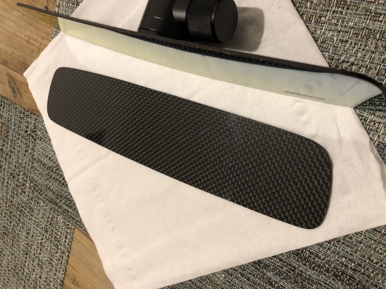 Die Rückseite des Rückspiegels wollte ich sauber gestalten und arbeite derzeit mit der Idee eine hauchdünne Carbonhaut zu kleben. Danke an @UncleHo an die prompte Lieferung des Testmaterials: sagenhafte Genauigkeit beim ausschneiden!!