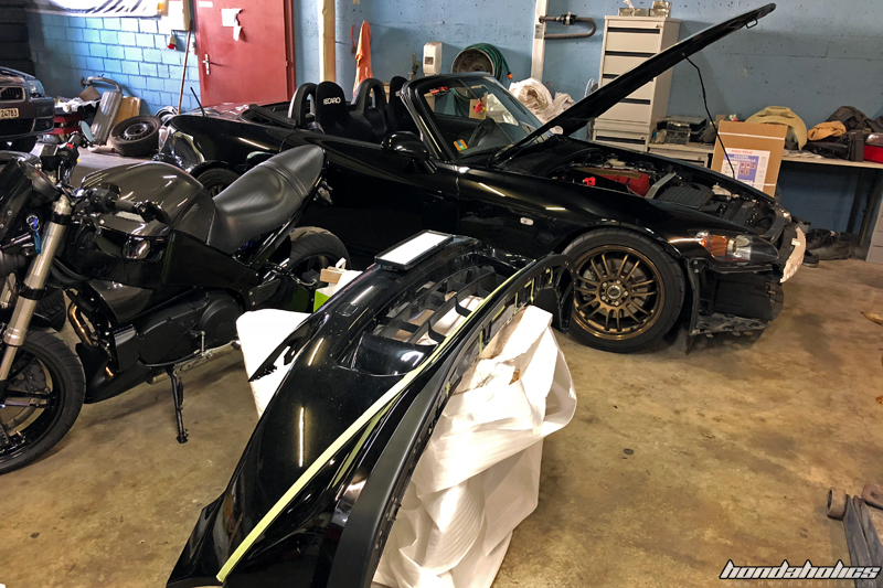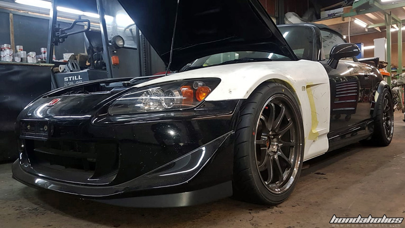 Irgendwann im März 2018 gelangte dann schliesslich die Sache mit dem Bördeln wieder in den Vordergrund - noch ein Jahr ohne den S2000 durch die Kurven zu scheuchen, wollte ich mir nicht antun. In dem Zusammenhang wurde eine alte Idee wieder aktuell auf ein Non-Staggered Setup zu wechseln. Wenn nicht jetzt zusammen mit dem Bördeln, wann dann? Leider war die Volk RE30 nicht mehr lieferbar, das heisst einfach vorne eine 9x17 bestellen war nicht möglich. Halb so schlimm habe ich mir gesagt, die RE30 habe ich vor 10 Jahren noch für meinen ersten S gekauft und wieder einmal etwas Neues tut sicher gut. Wenn es nur so einfach wäre! Nach langem hin und her habe ich schliesslich passende Felgen gefunden, die aber noch die eine oder andere Anpassung an der Carrosserie nötig machen. Also habe ich Teile in Japan und den USA bestellt und auf die Lieferung gewartet. Ziel war es, das Ganze bis Ende Juni fertig zu haben (an dieser Stellen ein kleiner Tipp: plant so etwas im Dezember, wenn ihr im Juni fertig sein wollt).