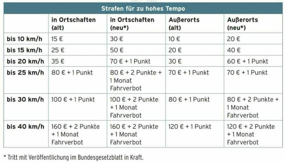 Ist in meinen Augen wieder nichts halbes und nichts ganzes. Bis 20 km/h zu schnell in Ortschaften nur 70 EUR und einen Punkt. Für mich ist das ein schlechter Witz.