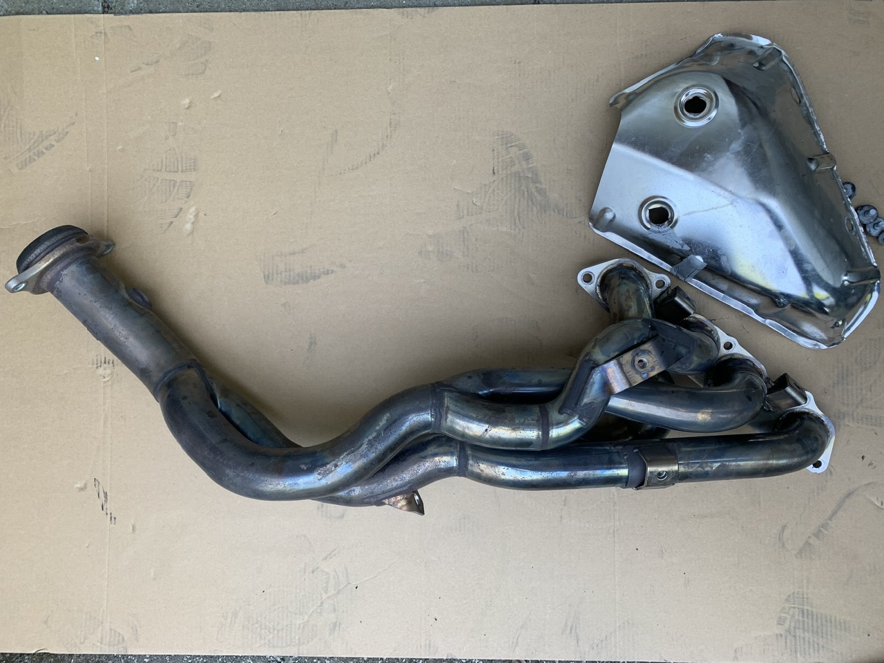 Zum Verkauf steht ein gebrauchter Fächerkrümmer von Mugen für einen Honda S2000. Der Krümmer selbst ist nicht gerissen und hat auch sonst keine Beschädigungen. Das Hitzeschutzblech ist gerissen, kann aber mit geringem Aufwand wieder instand gesetzt werden.