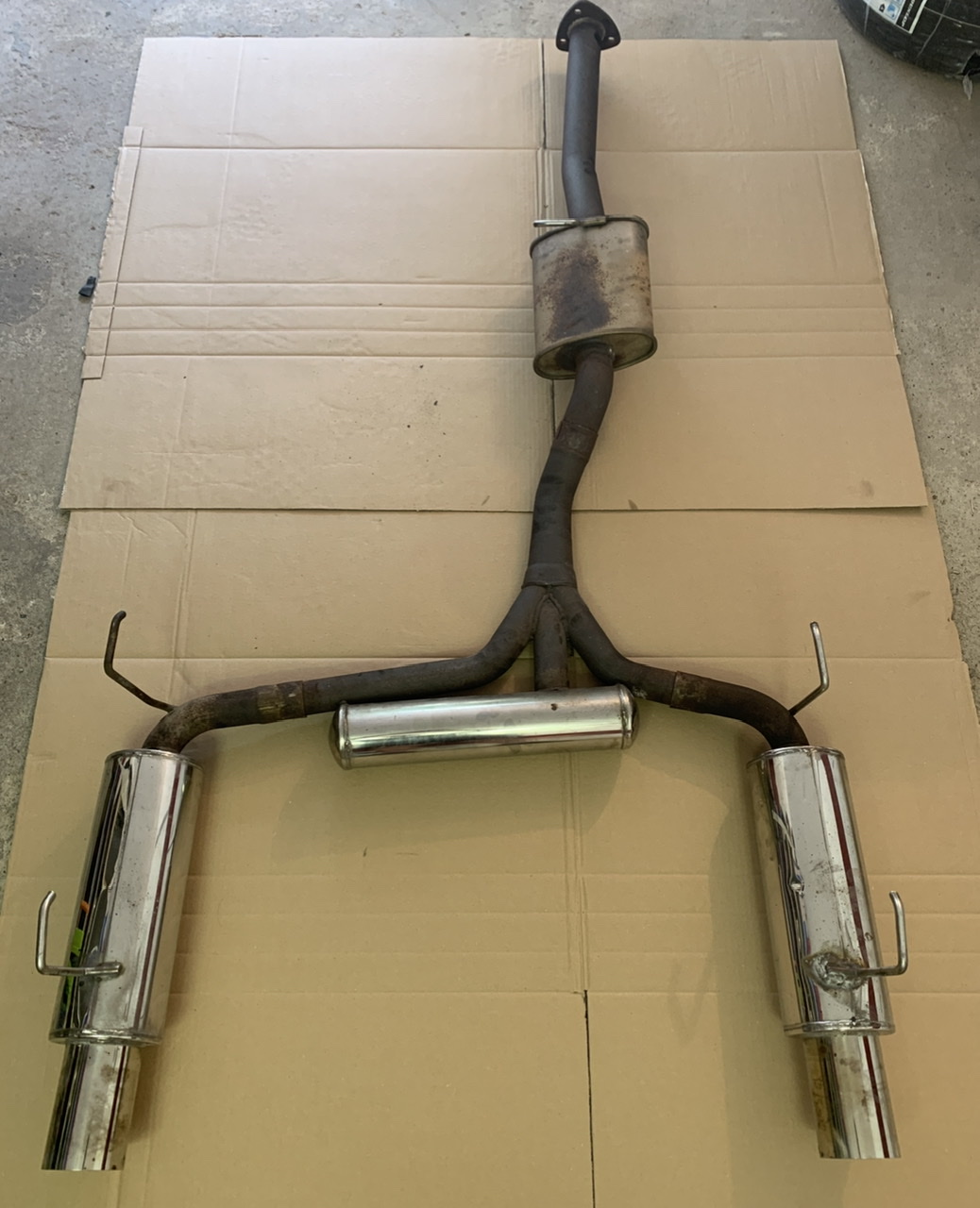 Biete hier den Forumsnachbau der beliebten und bekannten HKS Abgasanlage für den S2000 an. Die Anlage ist dem Alter entsprechend in einem guten Zustand, ein Halter wurde nachgeschweisst, und ein paar kleine Dellen und Kratzer sind vorhanden. Die Schellen müssen neu und die Anlage ist in einem Stück festgebacken. Silencer sind keine dabei, können jedoch noch vom Hersteller der AGA bezogen werden.