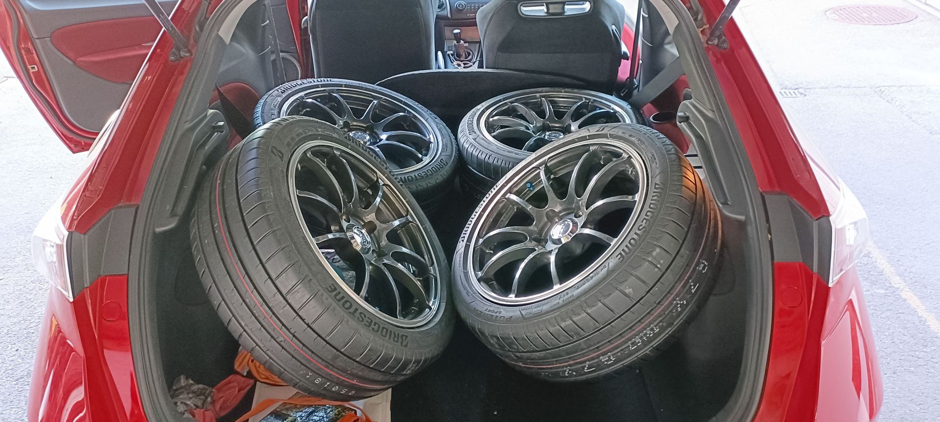 Nö, ich hab die 4 Räder immer flach liegend in meinen alten Civic VIII rein bekommen...