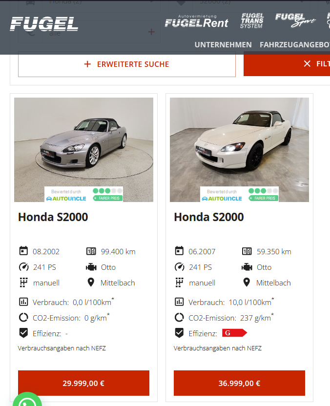 Mir ist bewusst, dass ich für mein Budget kein Scheckheftgepflegten S2000 Facelift in meiner Wunschfarbe mit 30.000 Km bekommen werde.