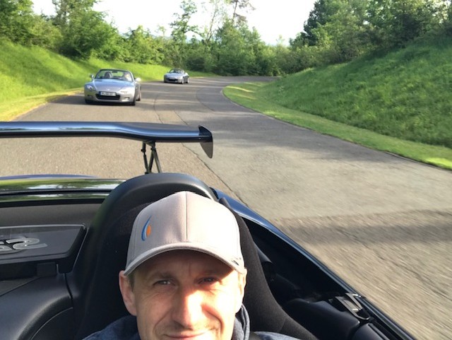 INSTRUCTOR: Christoph Homik führt Neulinge und auch erfahrene Piloten an die Ideallinie des BILSTER BERG heran. Kleine Blicke in seine Reifenkunde sind hier sehr begehrt.