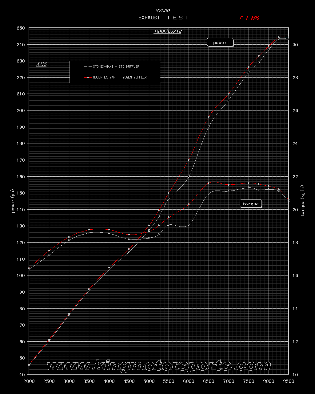 I think this shows how Mugen set out to make as much torque as they could to make the car more drivable around town, while living with the midrange restriction of the stock cat. The tradeoff, is hardly anything up top for the last 1000 rpm.