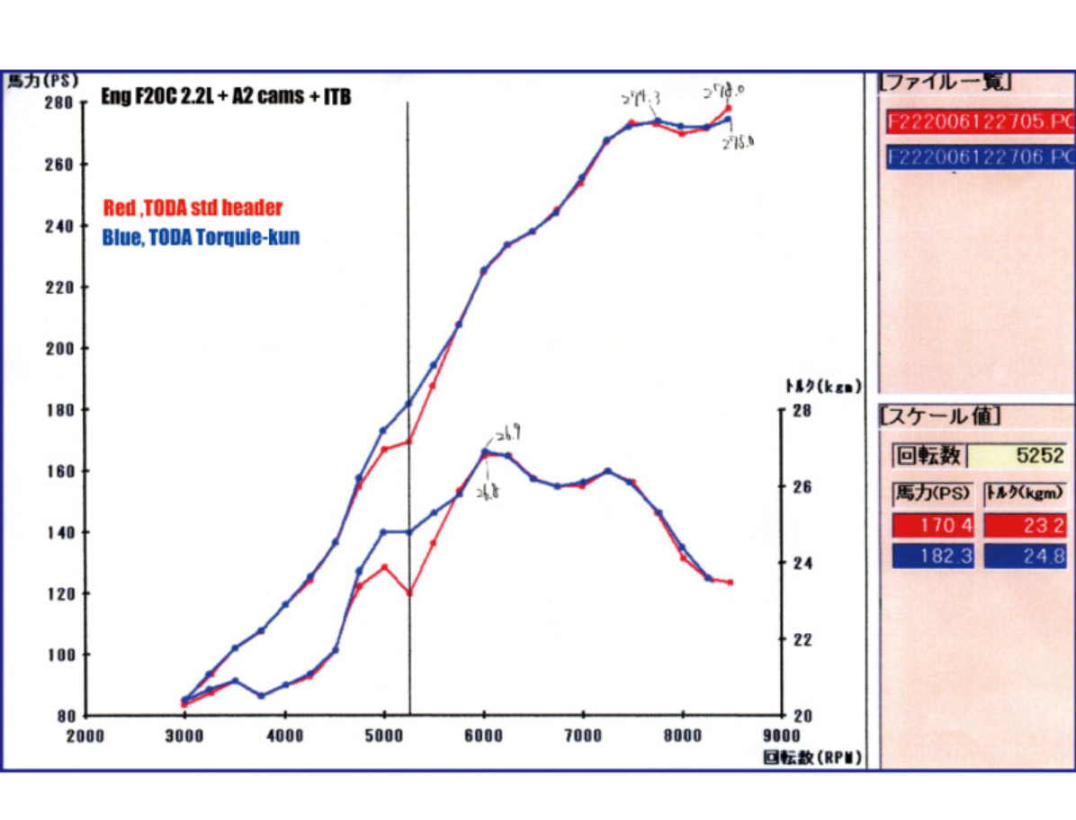 • Ich habe mal kurzerhand einen Vergleich anhand Dyno Charts erstellen lassen, indem Mugen und Toda Krümmer zusammengefasst werden.